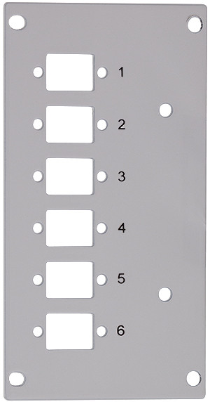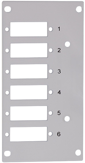 Frontplatte für Spleißverteiler FB5001, geeignet für 6 Ports, mit LC-Duplex oder SC-Simplex Adapter, aus Stahlblech,, Material: 1,2 mm, Farbe: lichtgrau RAL7035,, Maße: (B)58 x (T)1 x (H)107 mm, (FB5002)