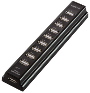 ports, connexions: 10 x port USB-A femelle, 1 x port USB-B, femelle, transfert de données maximal de 480 Mbps, prend en, charge le Hot Plugin et Plug & Play, boîtier en plastique,, dimensions: (L)180 x (P)25 x (H)20 mm, câble USB de 1,5 m et bloc d'alimentation inclus (UA0096)