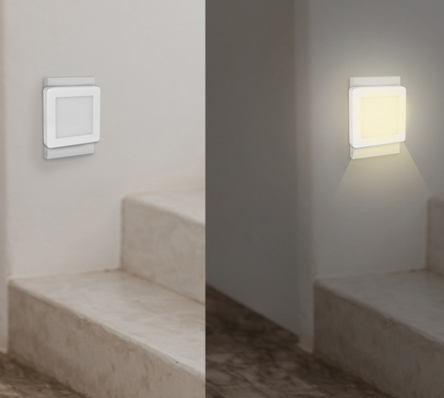 capteur crépusculaire, flux lumineux: 1,5 - 4 lumen, tempé-, rature de couleur: 2.700 K (blanc chaud), 4 x 3014 LED,, puissance: 0,36 watt, interrupteur à 3 niveaux (fort/faible/, off), fiche Euro, dimensions: (L)80 x (P)80 x (H)58 mm, (LED013)