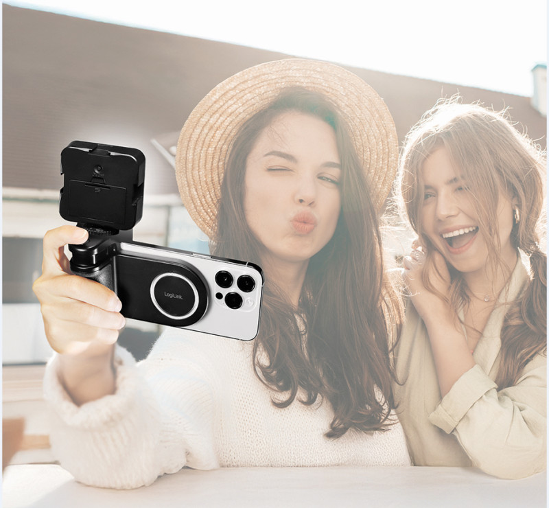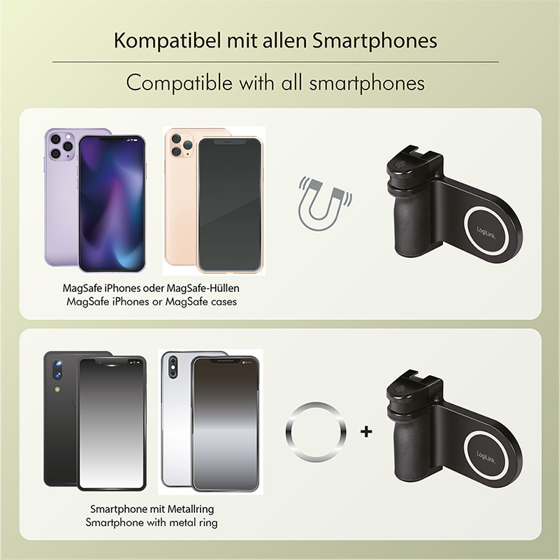 bluetoothfähig, mit Kameraauslöser, MagSafe-kompatibel,, LED-/Mikrofonhalterung & 1/4" Stativgewinde, abnehmbare, BT 5.2 Fernbedienung, USB-C Ladeanschluss: 5V/0,5A (2,5 W, max.), Magnethalterung bis 300 g, Farbe: schwarz, (AA0173)