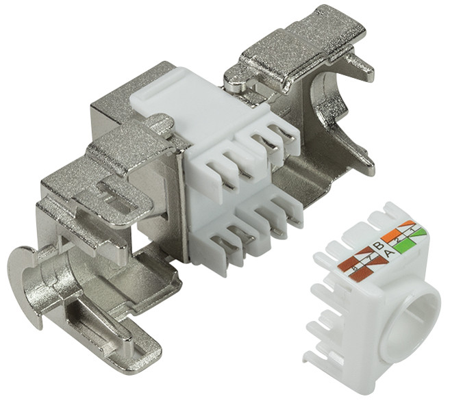 connexion STP 180 degrés, montage sans outils, port RJ45, femelle, classe EA 500 MHz, ISO/IEC 11801: 2010, TIA568-C.2,, convient pour câbles AWG22-26 rigides&multibrins, soutient, GbE, PoE & PoE+, dimensions: (L)17,2 x (P)41,7 x (H)26,4 mm, (NK4016)