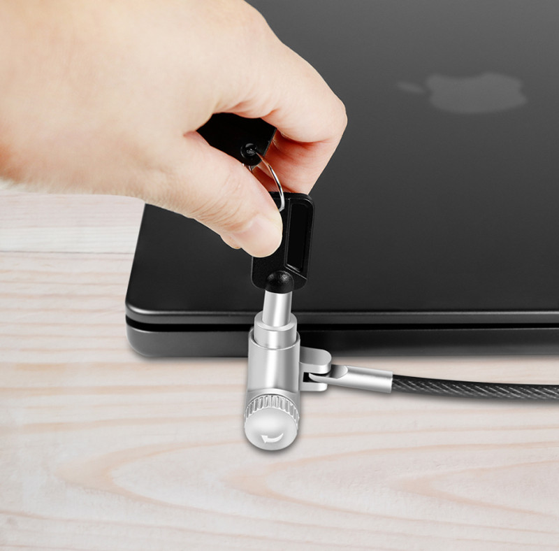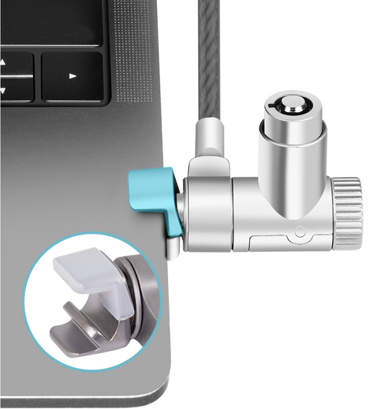 Schloss für MacBook Pro M1, M2, M3, M3, M4 Serie 14" bis, 16" (Modelle 2021 bis 2024), werkzeugfreies Verriegeln,, Gehäuse mit Zink-Legierung, manipulationsresistenter, Schließkern, Kabellänge: 2 m schnittfestes Sicherungskabel, (NBS015)