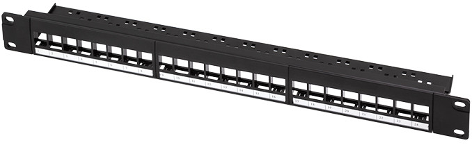 (RAL9005), 1 U, non équipé, pour 24 modules Keystone blindés, ou non blindés mesurant jusqu'à 16,7 mm de large, support, de câble amovible, en acier SPPC avec revêtement plastique, par poudre, comprend un jeu de fixation M6 & un serre-câbles, (NK4065)