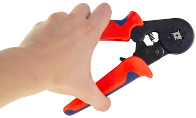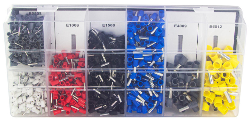 pince à sertir carrée pour embouts de fil, convient pour les, fils de 0,25 à 6 mm (AWG23-10), avec cliquet ajustable,, poignées en caoutchouc, couleur: rouge/bleu/noir, boîte d', assortiment de 1200 embouts de câble incl., (WZ0068)