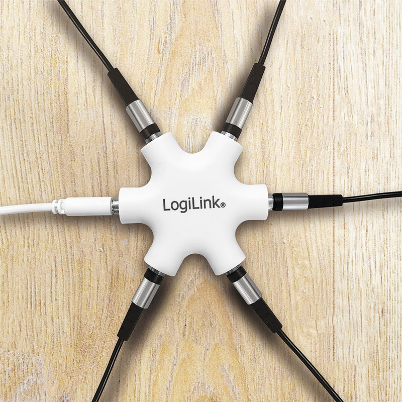 ports: 6 x prise jack femelle de 3,5 mm, pour la connxion de, 5 écouteurs, compatible avec les appareils comme iPod, MP3,, ainsi que les lecteurs DVD portables et smartphones,, câble audio de 0,2 m inclus, (CA1088)