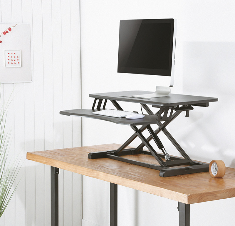 hauteur réglable de 110 à 505 mm, poignée de poussée avec, vérin à gaz, capacité de charge : 15 kg, construction en, acier, surfaces de travail en MDF, support intégré & étagère, pour clavier/souris, dimensions : (L)900 x (P)615 mm, (EO0033)