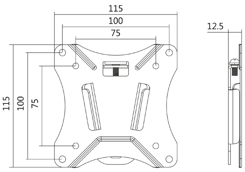 (13" - 27"), plat (montage fixe), capacité de charge:, max. 25 kg, espace au mur: 12,5 mm, en acier noir, conforme, aux normes VESA 75 x 75 mm, 100 x 100 mm,, avec matériel de fixation, (BP0073)