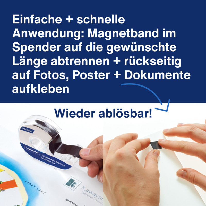 autocollant, noir, dévidoir avec une bande magnétique de 5 m, largeur: 19 mm, se détache sans laisser de traces,, pour fixer les affiches, photos et notices sur des surfaces, en métal (15510),