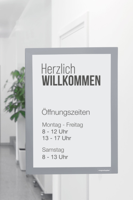double cadre d'information rabattable, autoadhésif, amovible, sans résidu, changement de documents via un aimant sur le, pourtour, peut se placer en formats portrait et paysage, contenu: 2 pièces, (1132132)