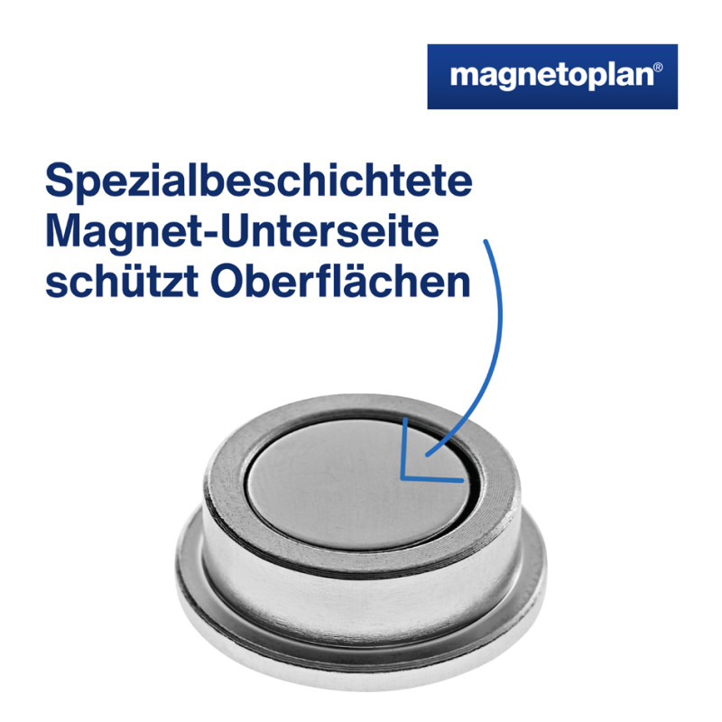 enorme Haftkraft von bis zu 15 kg, Format: 25 x 9 mm,, mit verbreitertem Rand, spezialbeschichtete Unterseite, verhindert das Zerkratzen von Tafeln, beinhaltet: 10 Magnete, (16630)