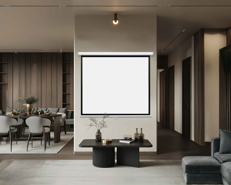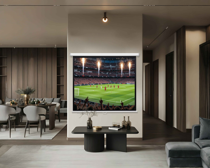 écran de projection enroulable, manuel, pour montage au mur, ou au plafond, boîtier blanc en acier revêtu par poudre,, surface de projection blanc mat, épaisseur du matériau: env., 0,38 mm, qualité d'image: 4K HD, lavable, (202501931)
