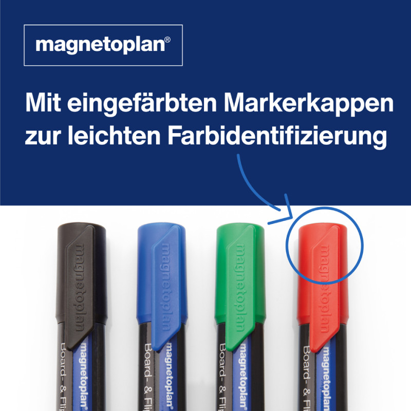 pour écrire sur les surfaces de tableau blanc et de chevalet, de conférence, largeur de tracé: 1,5 - 3,0 mm, capuchon et, clip à la couleur de l'encre, pointe ogive, assorti, contenu: 4 marqueurs en jaune, bleu clair, violet, orange, (1228110)