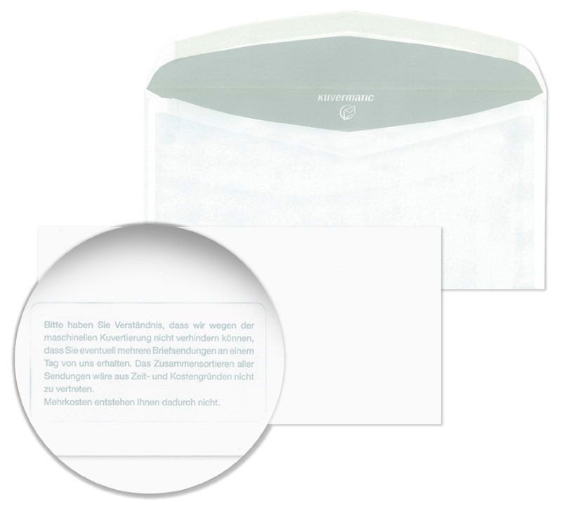 --------------- Für den Markt: D / L / A ------------------, Offset weiß, 80 g/qm, mit Fenster links, 45 x 90 mm,, Nassklebung, ISK (innenliegende Seitenklappen),, beinhaltet: 1.000 Briefumschläge, (242250 / 30005381)