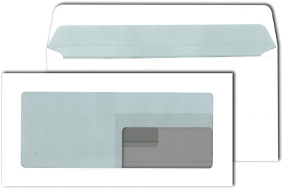 collage humide, rabats intérieurs de côté, offset blanc,, 100g/m2, impression interieure grise, fenêtre de vue, 130 x 200 mm, avec fenêtre pour adresse 45 x 90 mm, contenu: 500 pièces, (30005340/242160)