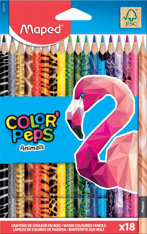 étui de 18 en carton, mine résistante, corps avec motif, animal, épaisseur de mine: 2,9 mm, étui avec fenêtre &, oeillet de suspension, couleurs assorties, contenu: 18 crayons, (832218)