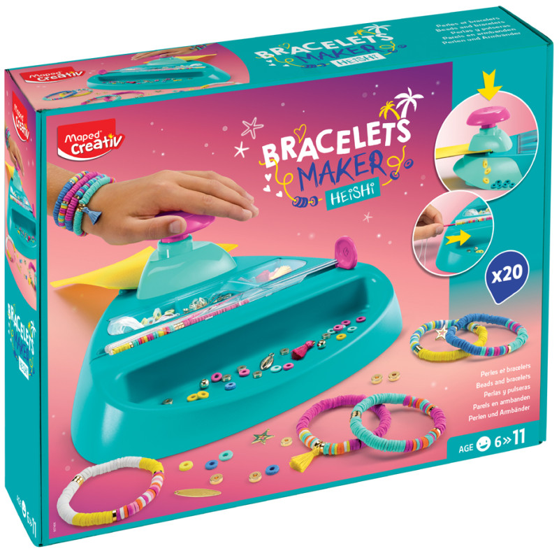 pour poinçonner des perles Heishi, incl. aiguille plastique,, cordon élastique de 500 cm, 8 feuilles de caoutchouc mousse, (pour env. 1.500 perles), 6 pompons, 4 pendentifs, 20, rondelles Heishi dorées en métal, 10 perles dorées & manuel, (907406)