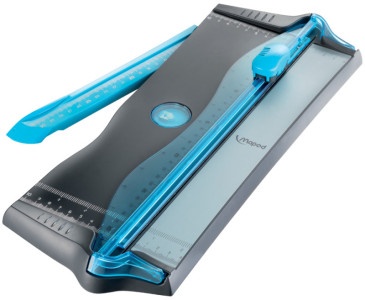 capacité de découpe: 5 feuilles, longueur de coupe: 305 mm,, mesures de la plaque: (L)380 x (P)150 mm, plaque de coupe en, plastique, 6 patins anti-dérapants, avec règle, coupe avec, sécurité automatique, compartiment de lames verrouillé, incl, 2 lames, couleur: noir/bleu (894110 1)
