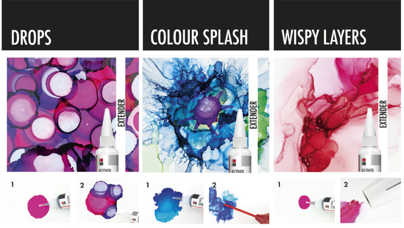 encre permanente à base d'alcool, pour diverses techniques, de fluidité et des dessins créatifs, miscibles entre elles,, séchage rapide, sans acide, idéal pour des supports non, absorbants, flacon en plastique sous blister, (12160059020)