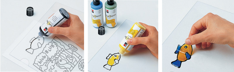 - pour la décoration de fenêtres, miroirs, verre, porcelaine, carreaux et autres surfaces lisses
