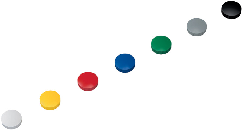 aimant rond, diamètre: 24 x (H)8 mm, en plastique, incassable, dessous laqué, contenu: 10 pièces, (61624-55),