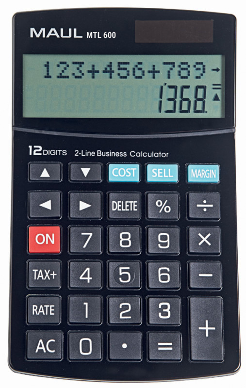 affichage LCD, 2 lignes, calcul de taxes, calcul de pourcen-, tage, calcul de la marge bénéficiaire, touche d'effacement,, arrêt automatique, fonctionne à l'énergie solaire & sur pile, dimensions: (L)103 x (P)170 x (H)26 mm, poids: 125 g, (7269090)