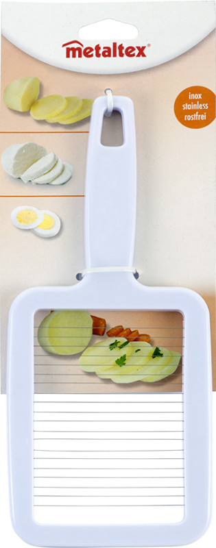 couleur: blanc/inox, matériau: ABS / lames inox,, pour les pommes de terre cuites, les oeufs et la mozzarella,, dimensions: (L)115 x (P)300 x (H)19 mm, (204702084),