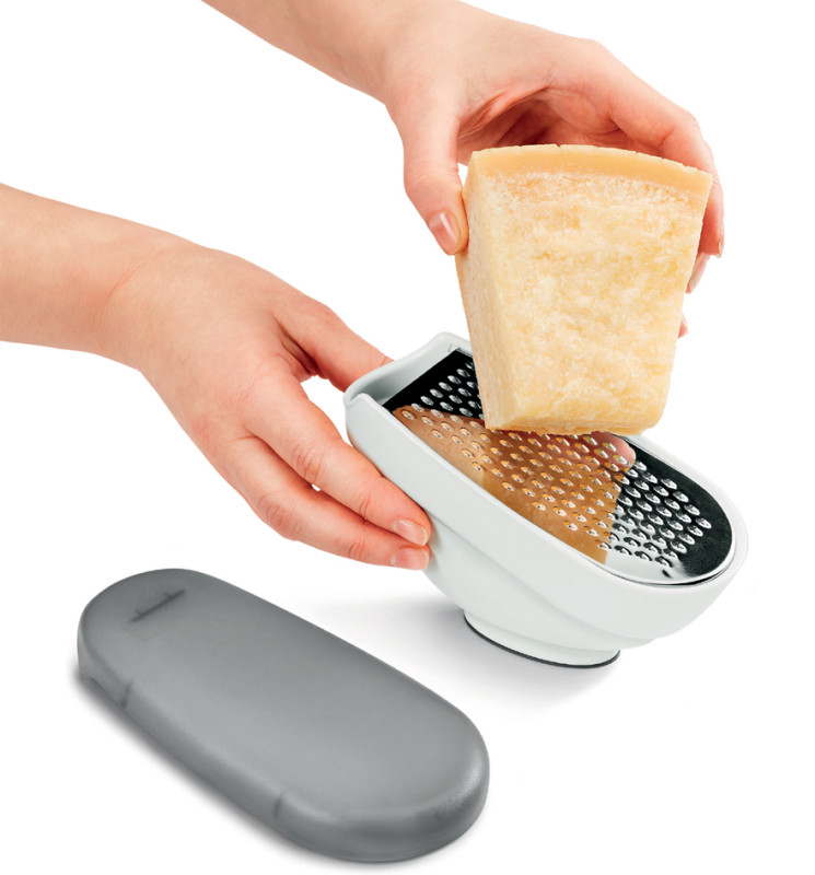 gris/blanc, râpe de cuisine, matériau: acier inoxydable /, plastique ABS/PE/TPR, 3 râpes interchangeables, réservoir, avec fond antidérapant et couvercle, convient aussi pour, conserver des aliments, dim.: (L)105 x (P)186 x (H)84 mm, (199709080)