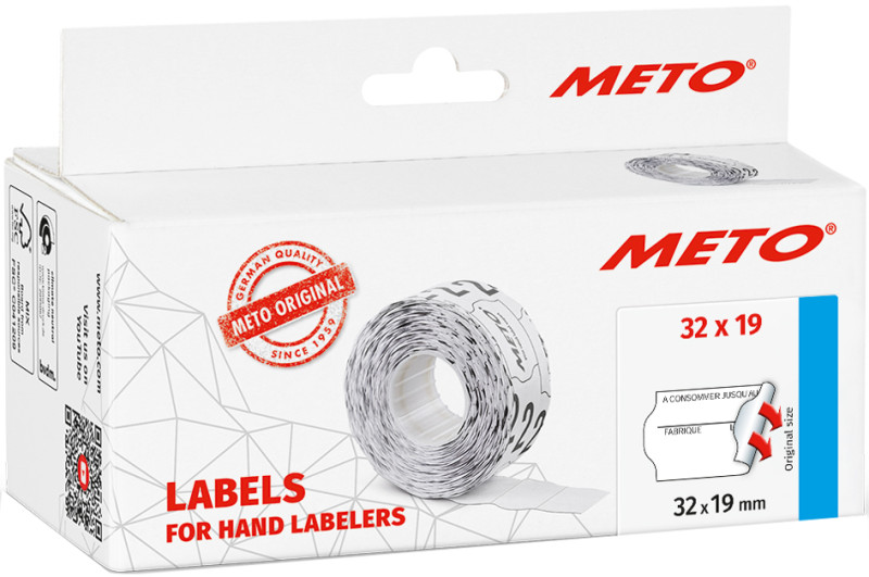 adapté pour METO Classic L, 2 lignes, adhère de façon, permanente, avec bord ondulé, pré-imprimé: "A consommer, de préfrence avant le ...", contenu: 5 rouleau de 1.000 étiquettes, (30011444)