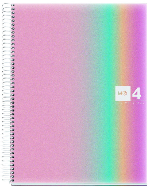 quadrillé, 120 feuilles, papier blanc extra-opaque, 70 g/m2,, avec bande de 4 couleurs différentes sur le côté et en-tête,, perforé 4 trous, avec microperforation, couverture souple, opaque en PP, 0,8 mm, spirale en aluminium, (MR4084)