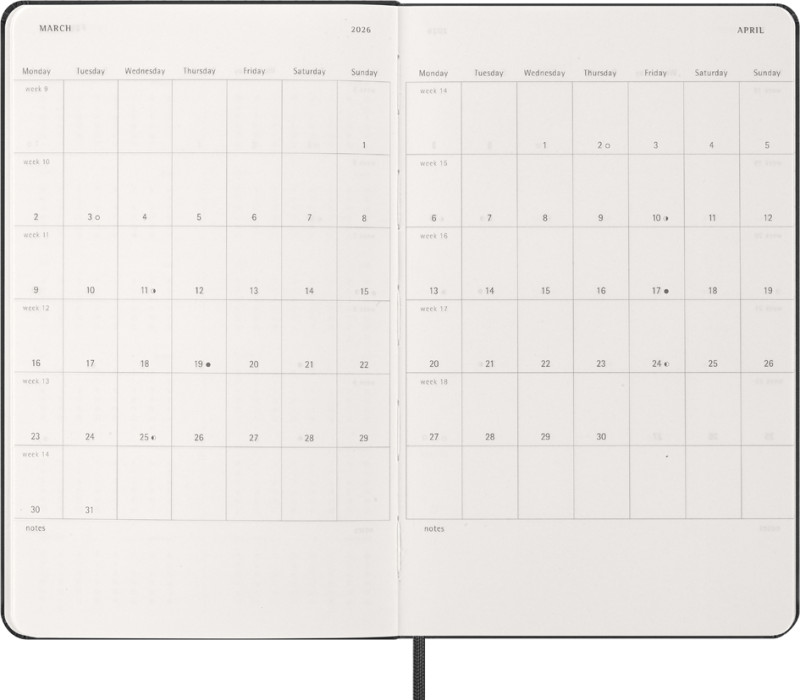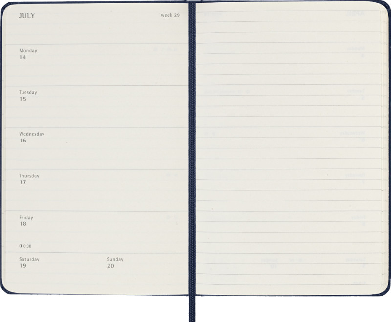 langue: anglais, semainier, 190x250 mm, 1 semaine = 1 page,, page de droite lignée, reliure fixe, 144 pages, papier blanc, ivoire, 70 g/m2, sans acides, avec élastique de fermeture,, couleur: noir, (8056999275259)