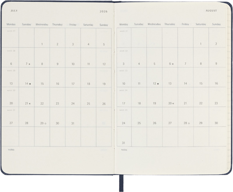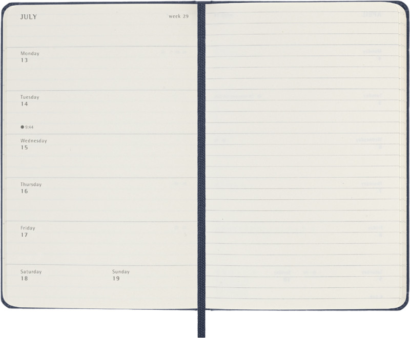 langue: anglais, calendrier semainier, 90 x 140 mm,, 1 semaine = 1 page, page de droite lignée, reliure fixe,, 144 pages, papier blanc ivoire, 70 g/m2, sans acides, avec, élastique de fermeture, couverture rigide, (8056999275549)