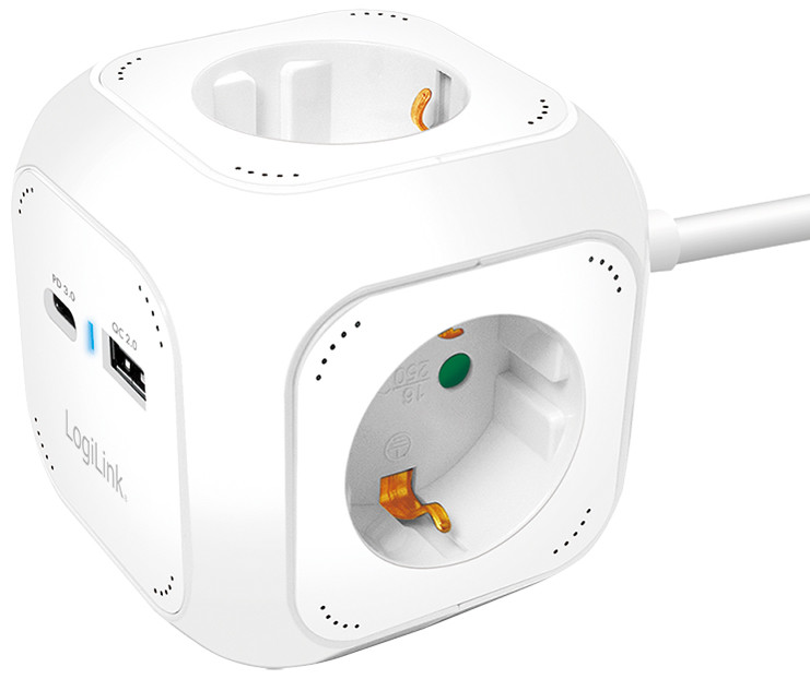 -------------- für den Markt: D / NL / A / L ---------------, Anschlüsse: 4x CEE 7/3-Steckdosen, 1x USB-C Kupplung,, 1x USB-A (QC) Kupplung, 20 Watt Schnellaufladung, Kabel-, länge: 1,4 m, Schutzkontaktstecker, inkl. Montageständer, (LPS283U)
