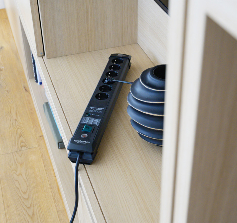 -------------- für den Markt: D / L / A / NL ---------------, 6 Schutzkontakt-Steckdosen, mit Schalter, erhöhter, Berührungsschutz, Entstörfilter: EMI/RFI, Kabellänge: 3 m, Maße: (B)750 x (T)85 x (H)75 mm, schwarz, (1951160401)