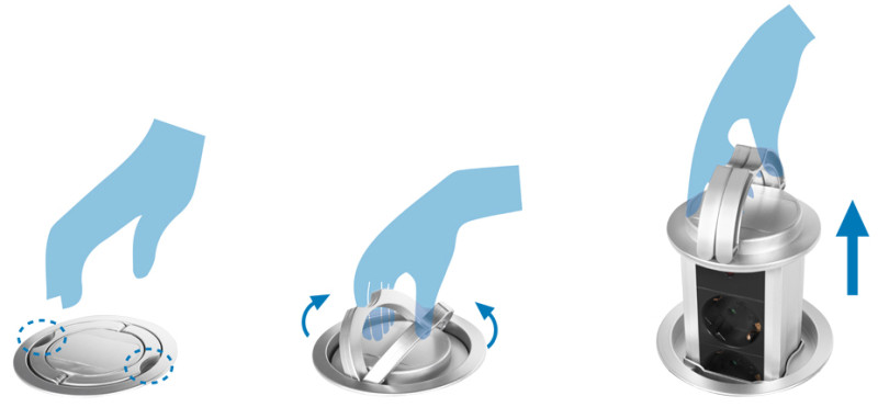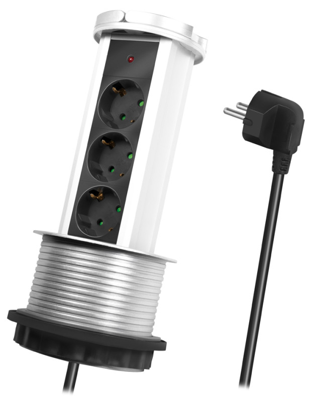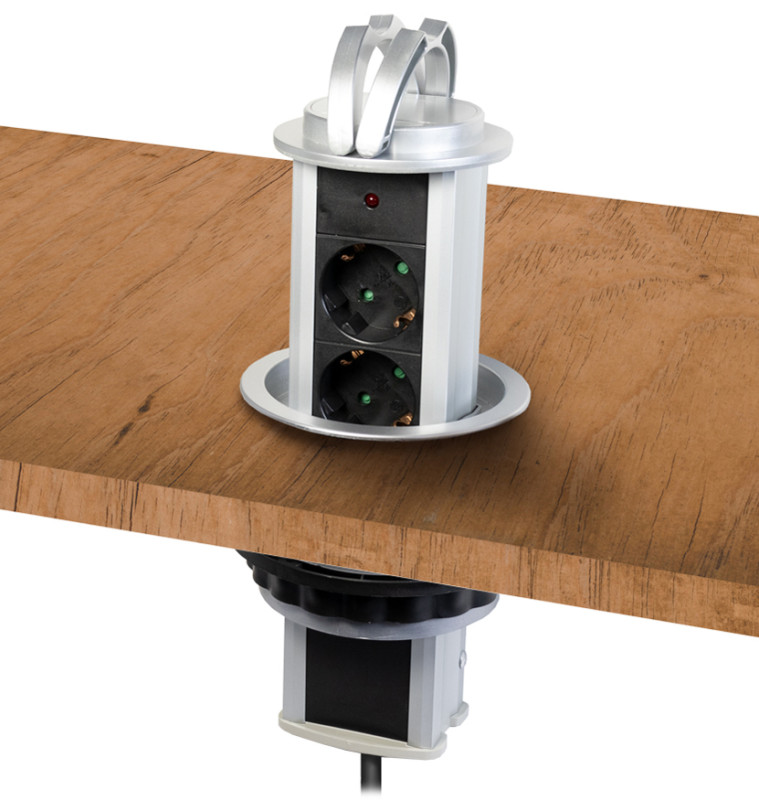 --------------- für den Markt: D / NL / A / L --------------, schwarz/silber, 3x Schutzkontakt-Kupplungen (CEE7/3),, passend für Tische mit einem Kabelloch-Durchmesser von, 100 mm, erhöhter Berührungsschutz, Kabellänge: 1,8 m, (LPS235A)