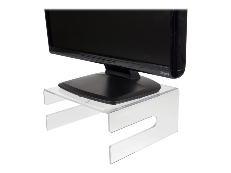 Le lève-moniteur en acrylique Neomounts, modèle NSMONITOR50 est réglable en hauteur et supporte des écrans jusqu'à 25 kilos. Il est adapté aux écrans CRT et aux écrans plats. Il possède une allure du tonnerre en raison du matériau acrylique ressemblant à du cristal clair, sa surface est polie pour un aspect optimal. Le clavier s'adapte dans les fentes spéciales pour garder le lieu de travail propre.