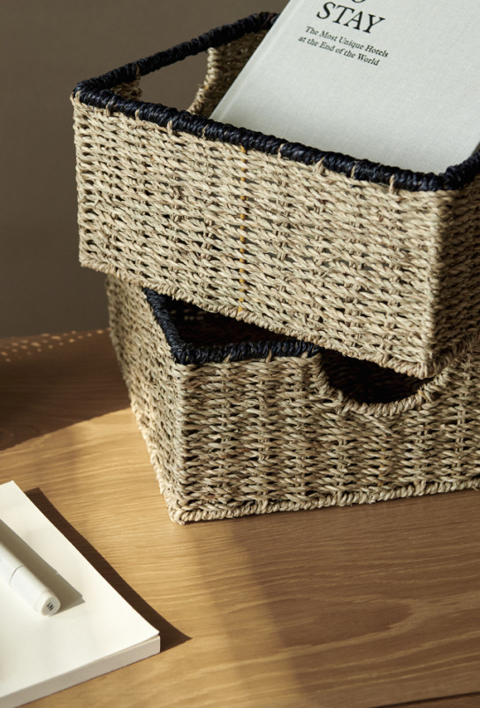 fabriqué à la main, en zostère avec cadre métallique,, couleur: naturel avec liserai noir, avec deux poignées,, dimensions: (L)300 x (P)300 x (H)150 mm, (53710800),