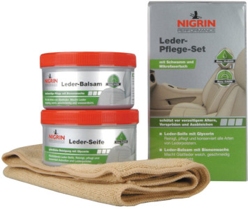 beinhaltet: 1 x Leder-Balsam mit Bienenwachs, 1 x Leder-, Seife mit Glycerin, 1 x Mikrofasertuch, 1 x Schwamm, (73170), ,