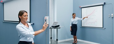 dimensions surface de projection: (L)1600 x (H)1200 x P)90mm, incl. télécommande, pour montage mural ou au plafond, toil, en blanc mat, format multimédia 4:3, (1901971)