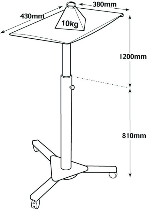 pour présentations avec projecteurs LCD ou Dia, réglable en, hauteur et en inclinaison, capacité de charge 10 Kg, 4, roulettes directrices dont 2 blocables,, dimensions: (L)380 x (P)430 x (H)810 - 1.200 mm, (1900790)