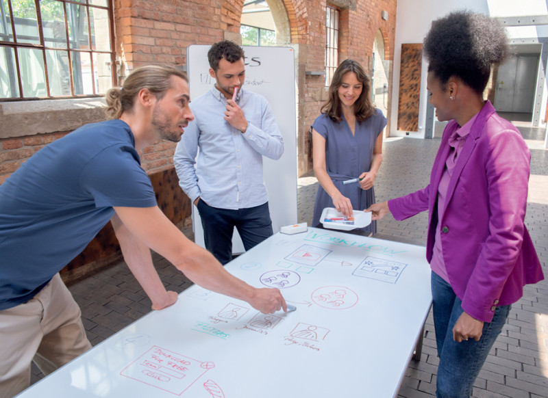 /gris, tableau blanc double face à poser, surface laquée,, magnétique, inscriptible avec marqueurs pour tableau blanc,, coins arrondis avec cadre noir doux au toucher, facile à, configurer, (l)900 x (H)1.800 mm, (1915562)