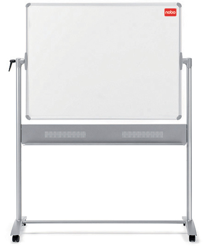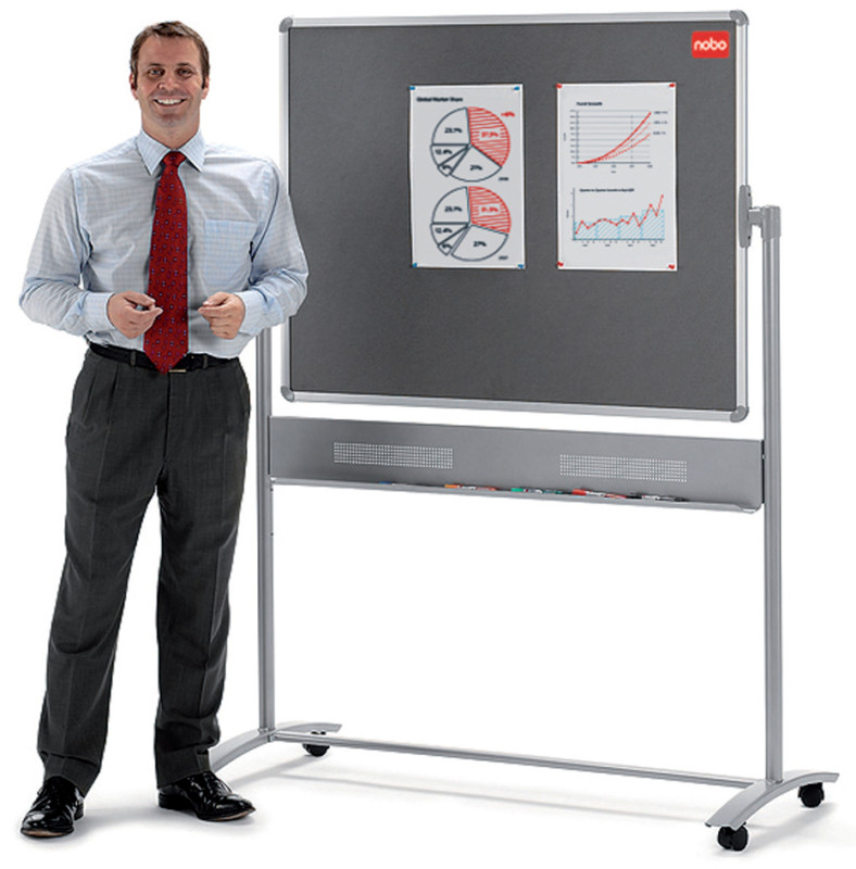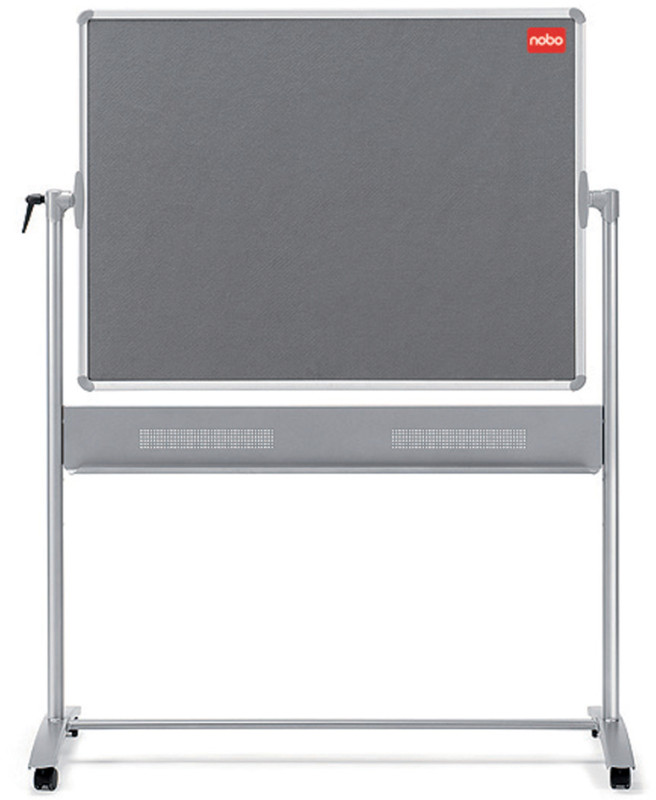 partie avant: tableau blanc, aimant,, panneau arrière: tableau fibre textile, gris, avec mécanisme, tournat - tableau ajustable individuellement, grand auget, pour stylos, avec chassis sur 4 roulettes - dont 2 réglables, (1901043)
