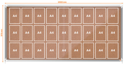 pour l'intérieur, cadre en aluminium, vitre de sécurité 4 mm, serrure de sécurité, avec 2 clés,, dimensions exterieures: (L)1.412 x (P)54 x (H)1.000 mm, dimensions intérieures: (L)1.330 x (P)18 x (H)927 mm, (1902575)