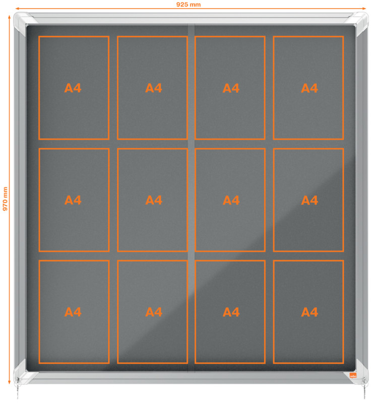 pour l'intérieur, fond en textile bleu, cadre en aluminium,, vitre de sécurité de 4 mm, serrure de sécurité, avec 2 clés,, Dimensions extérieures: (L)972 x (P)54 x (H)1.000 mm, Dimensions intérieures: (L)890 x (P)18 x (H)927 mm, (1902566)