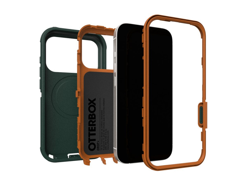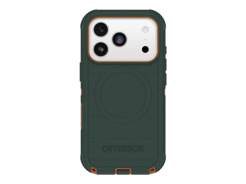 OtterBox Defender Series Pro - Coque de protection pour téléphone portable - robuste - compatibilité avec MagSafe - polycarbonate, élastomère thermoplastique (TPE), silicone, mousse viscoélastique - intrigue verte - pour Apple iPhone 17 Pro