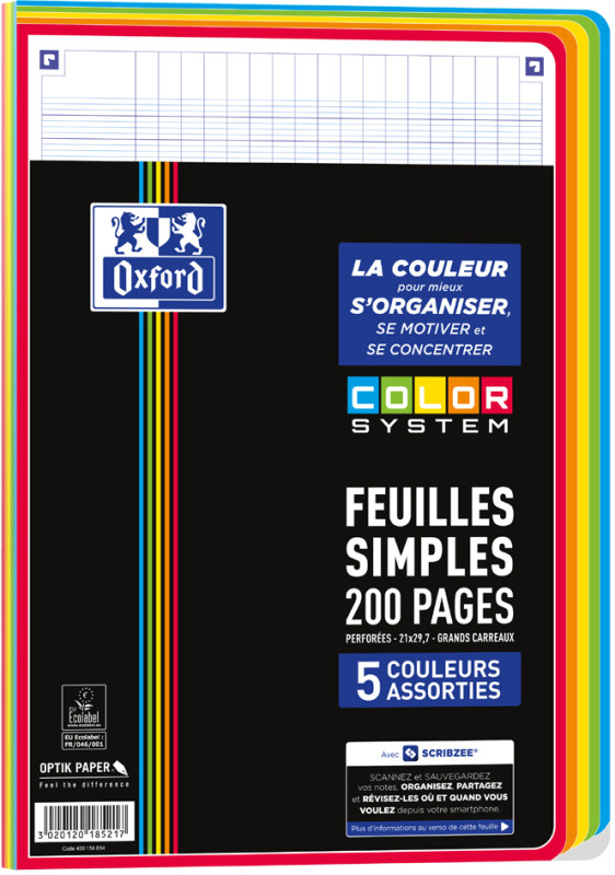 200 pages, 90 g/m2, papier extra-blanc, perforation 4 trous,, chaque page a un cadre de couleur, 5 couleurs de cadre,, compatible SCRIBZEE, (400156834),