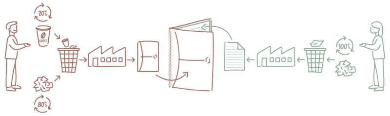 90 pages, couverture en matériau CupCycling, pages de notes, en Optik Paper recyclé 90 g/m2, spirale double grise,, couverture personnalisable, assorti dans 6 couleurs, en paquet de 5 pièces, (400154144)