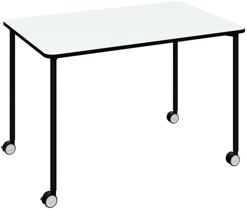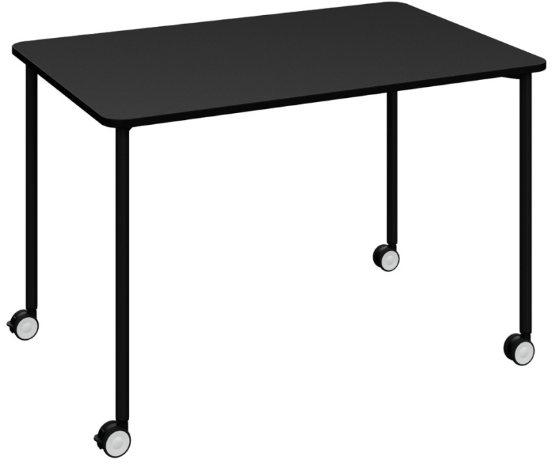 plateau de table en MDF avec revêtement en mélamine de 19 mm, en noir avec bords noirs, structure en acier avec peinture, epoxy en noir mat, 4 roulettes avec bandage en caoutchouc, plein, dimensions: (L)1.160 x (P)760 x (H)750 mm, (TMC116X76.01.01)