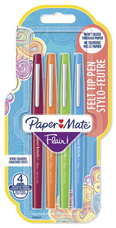 largeur de tracé: M (1,0 mm), encre à base d'eau,, ne pénètre pas le papier, clip en métal, corps et capuchon, à la couleur de l'encre, couleurs assorties, en paquet de 6 x 4 feutres, (S0697071)