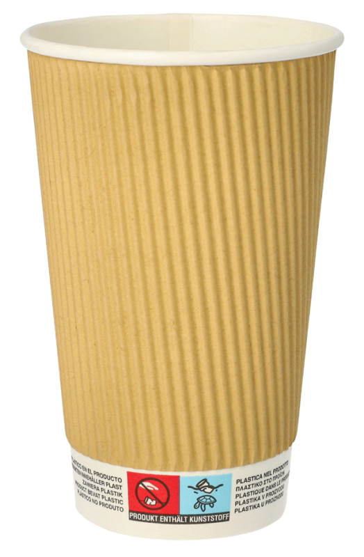 en carton cannelé avec revêtement PE, diamètre: 90 mm,, hauteur: 137 mm, ne convient pas aux boissons alcoolisées,, biodégradable, utilisation jusqu'à 90 degrés max.,, contenu : 25 pièces, (86272)