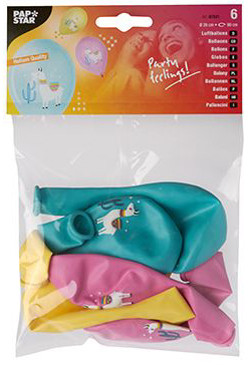 Durchmesser: 290 mm / Umfang: 850-900 mm, geeignet für, die Befüllung mit Helium, sortiert in den Farben: rosa,, senfgelb und aquamarin, mit Lama-Motiv Aufdruck, beinhaltet: 6 Stück, (87031)